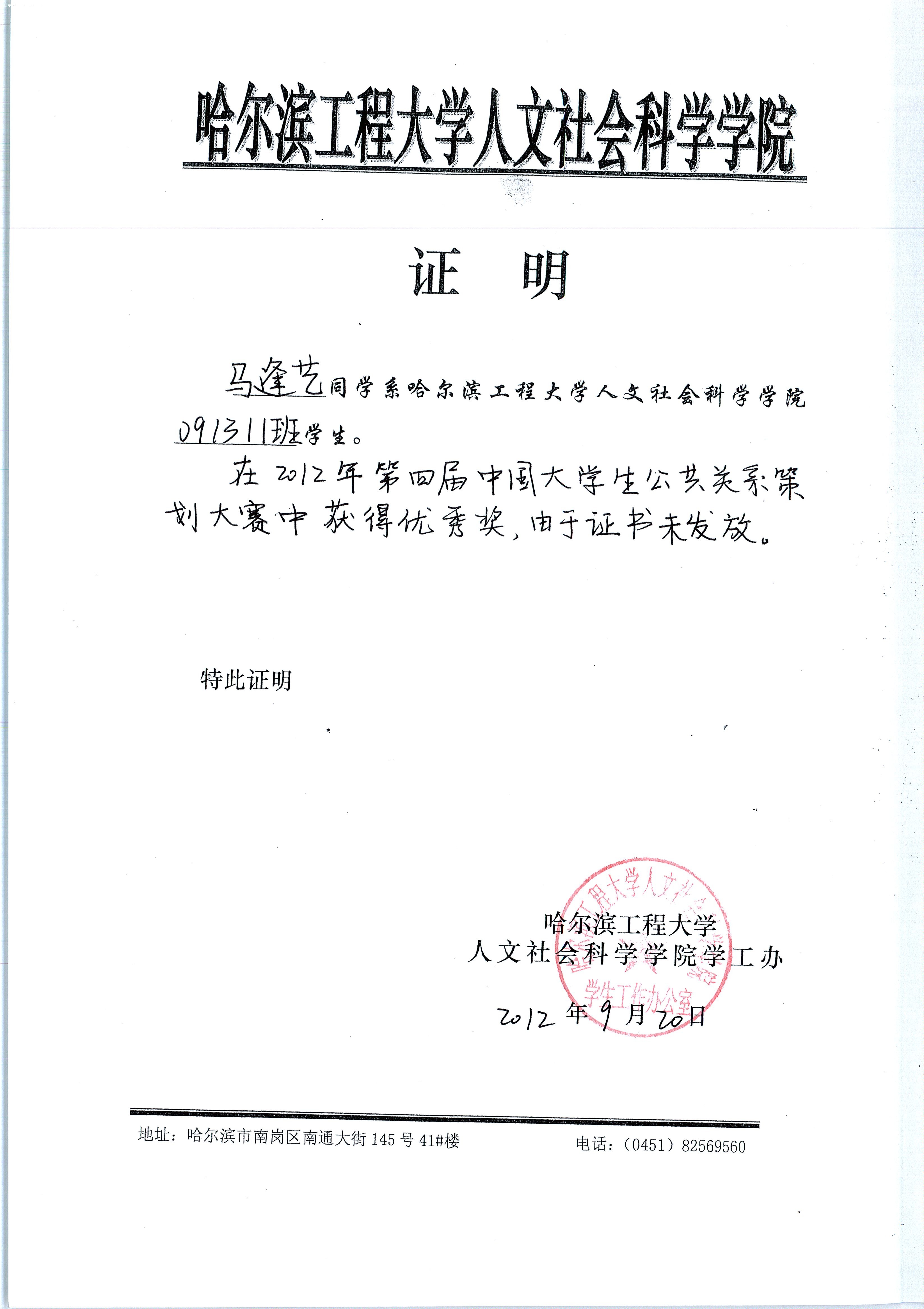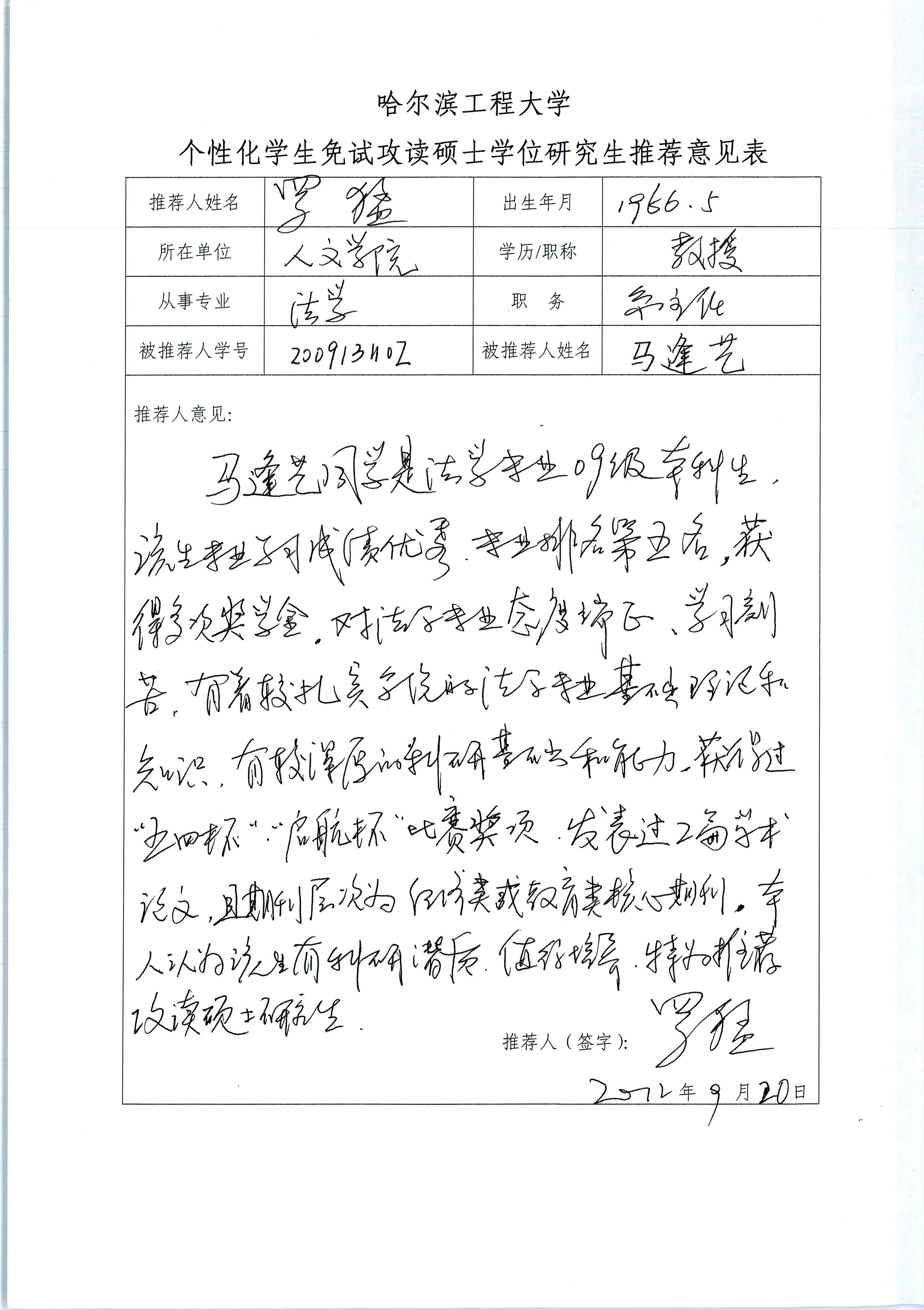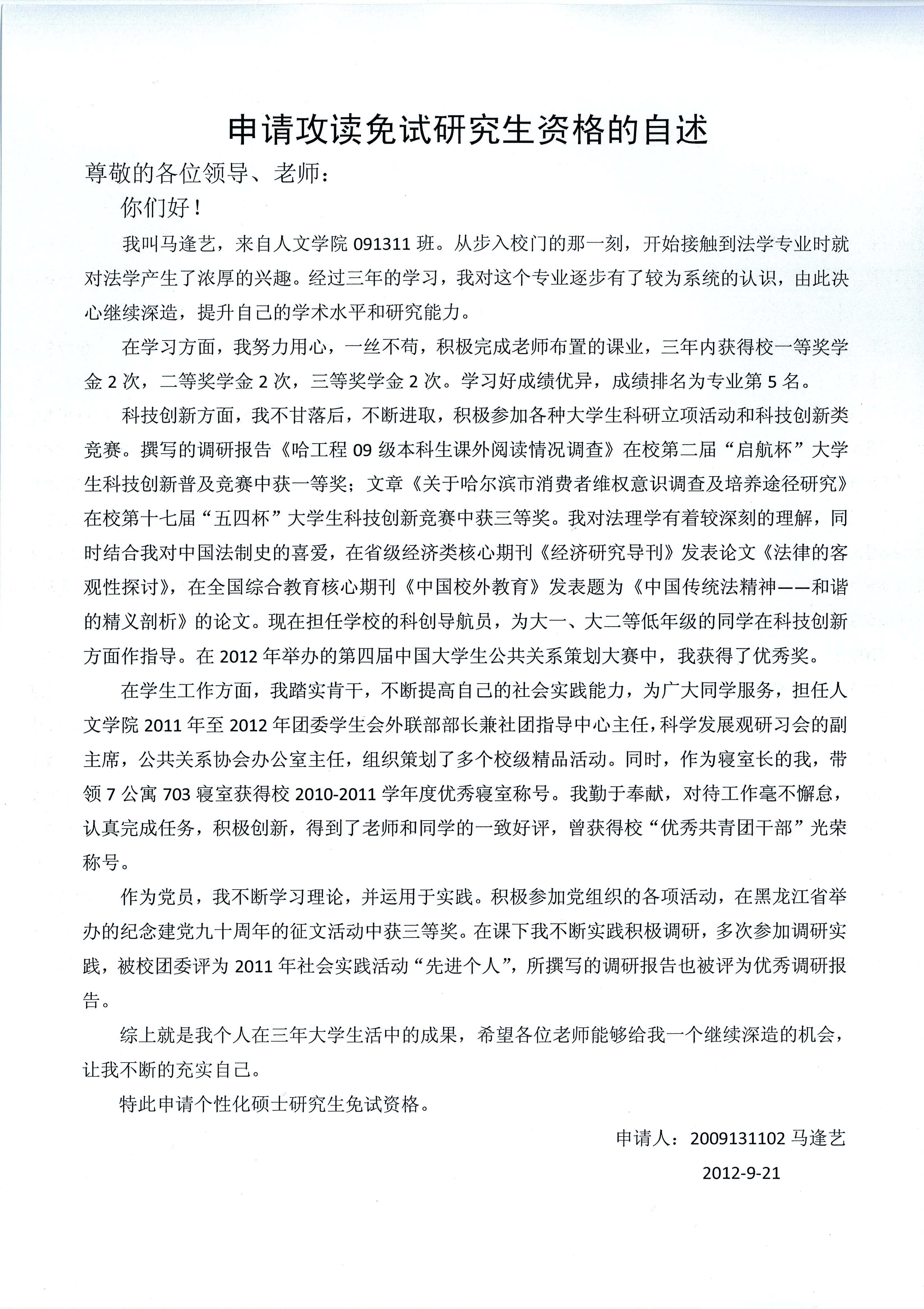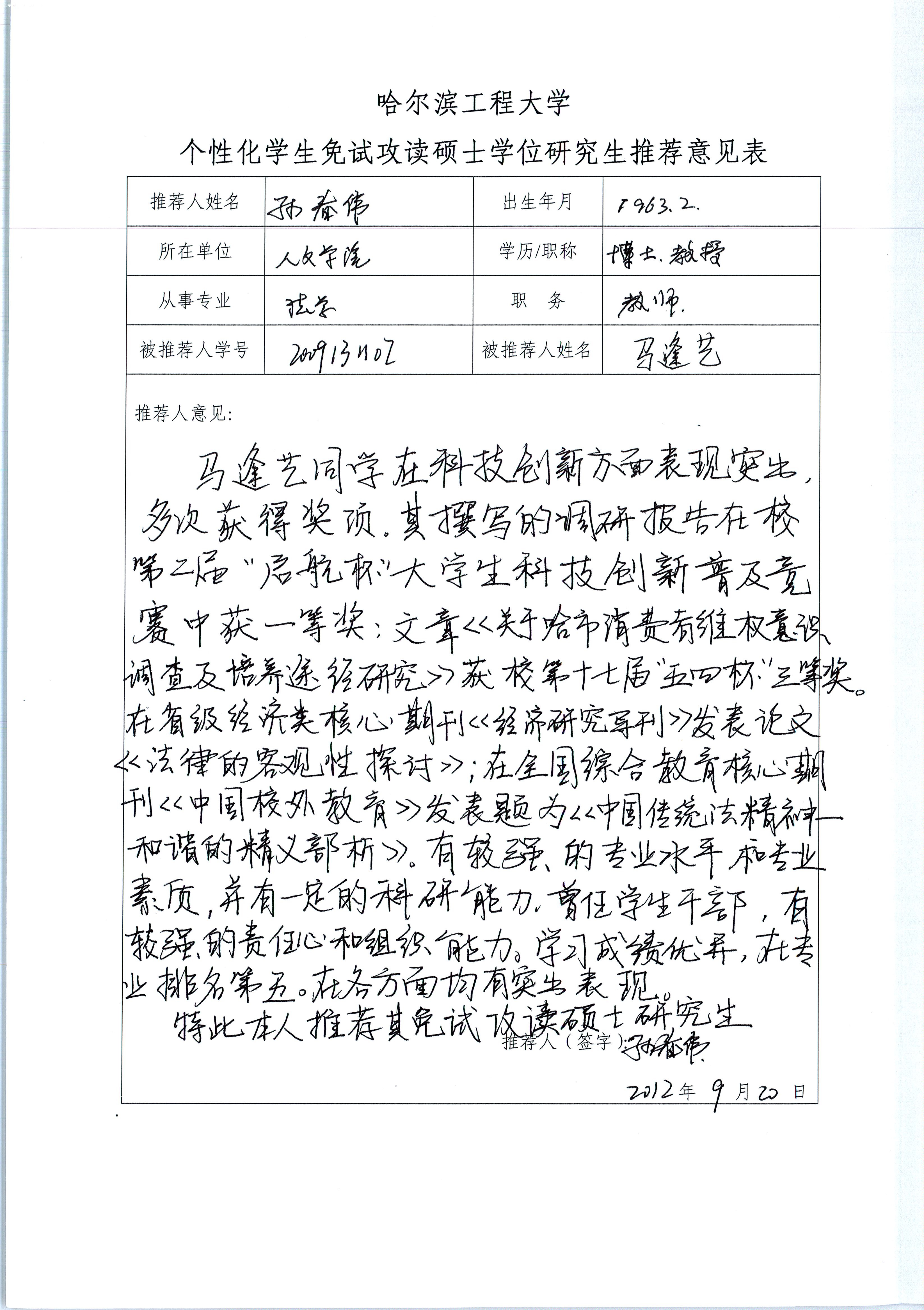 ac米兰官网中文网站推免评审小组于2012年9月25日召开全体会议,推免评审小组共7人,出席7人。经与会成员的充分讨论,同意推荐马逢艺同学参加个性化推免评审,现将其材料予以公示,如有意见请于9月29日前向学院推免工作领导小组反映。电话:82569513。