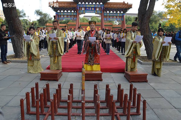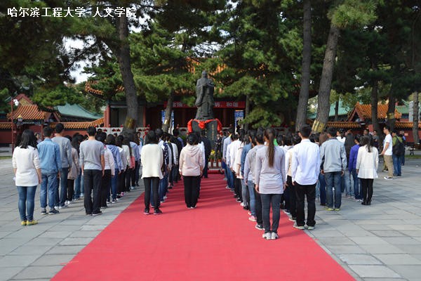 9月28日下午2时,ac米兰官网中文网站于哈尔滨文庙举办孔子诞辰2565周年祭祀典礼。人文学院党委书记兼副院长王惠民、人文学院党委副书记杨国庆、社会学系主任刘军教授、社会学系教师赵岩、141351班班主任张彬老师出席典礼;2012、2013级部分学生,2014级全体学生参与典礼。