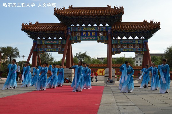 典礼结束后,人文学院文艺部联合DC舞蹈社团共同演出汉代宫廷舞《踏歌》,通过舞蹈展演的形式宣扬中国传统文化。随后,在人文学院讲解员的引导下,2014级新生一同参观文庙。