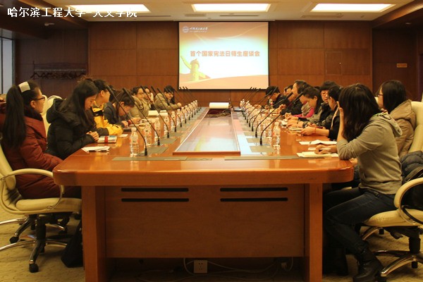 12月4日,我国迎来第一个国家宪法日。上午8时30分,校党委宣传部与人文学院于启航贵宾会议室联合举办“宪法日座谈会”。人文学院党委王惠民书记主持会议。校党委宣传部隋鹏飞副部长,人文学院法学系教师及部分法学系研究生、本科生近40人参加了此次座谈会。