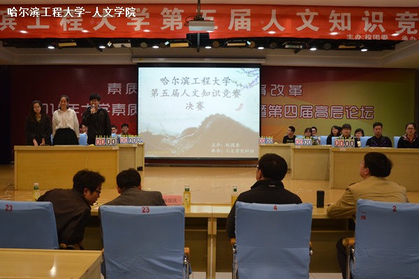 5月9日晚6时30分,由校团委主办、人文学院承办的第五届人文知识竞赛决赛在启航多功能厅举行。人文学院党委副书记杨国庆、社会学系教师唐国建、张翼飞、马克思主义学院教师王林楠担任比赛评委,人文学院全体大一、大二学生到场观赛。
