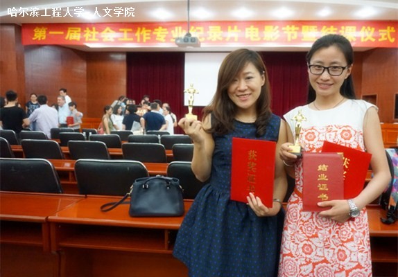 2015年5月27日至6月3日,米兰官网教师韩雪、李雪参加了在南京理工大学举办的第一届社会工作纪录片制作专题培训,并在6月3日举行的第一届社会工作专业纪录片电影节上获得“最具感召力奖”。本届电影节共十三组队伍参与纪录片展映,其中,前三甲队伍获得“最具感召力奖”。