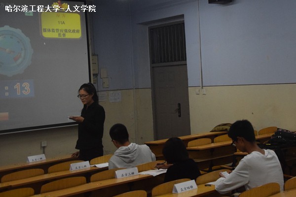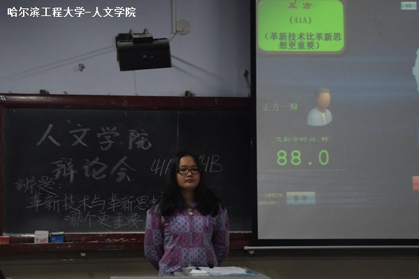 此次比赛以“媒体管理应强化行业自律还是政府监督”和“革新技术与革新思想哪个更重要”为辩题,按照历年世博赛制进行比赛。比赛过程中正反方辩手从身边例子出发、从个人角度发展到社会问题,有层次地推进整场比赛。双方辩手激烈交锋的同时严格遵守辩论礼仪,场下观众认真欣赏比赛。辩论赛结束后,观众就辩题对辩手进行提问,现场气氛活跃。最后,由杜航对本场辩论赛进行点评和给予技术性指导并宣布获胜队伍。其中,11班获胜队伍为A队,最佳辩手为B队3辩,41班获胜队伍为B队,最佳辩手为A队4辩。