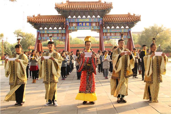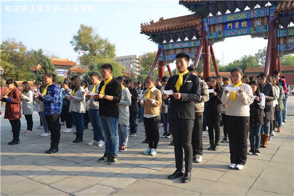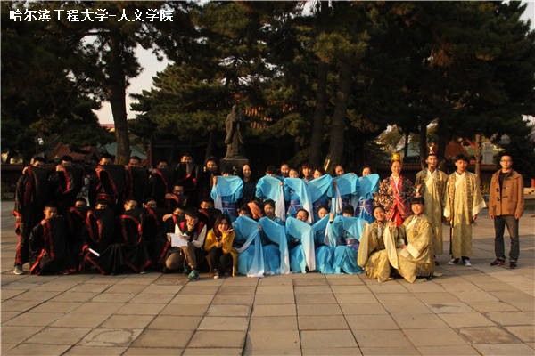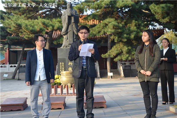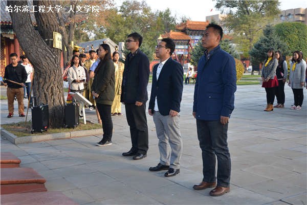 10月16日下午2时,人文学院、马克思主义学院于哈尔滨文庙举办孔子诞辰2566周年祭祀典礼。人文学院与马克思主义学院联合党委副书记张爱国,人文学院学工办主任董春辉,人文学院团委书记李瑶,20152211班班主任吕霖出席典礼。2013、2014级部分学生,2015级全体学生参与典礼。