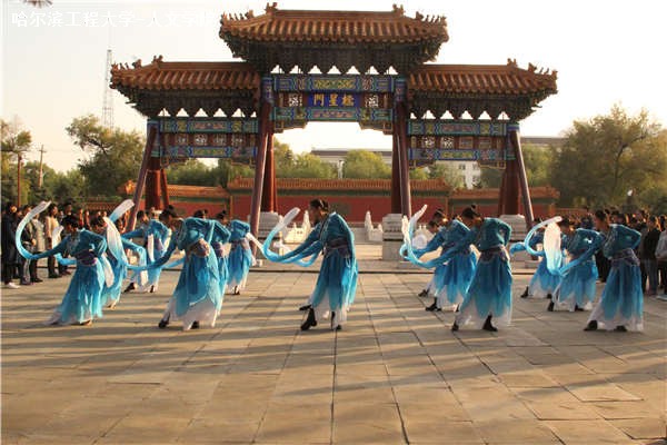 典礼结束后,人文学院文艺部联合DC舞蹈社团共同演出汉代宫廷舞《踏歌》,通过舞蹈展演的形式宣扬中国传统文化。礼成后,全体学生在讲解员的带领下参观文庙。
