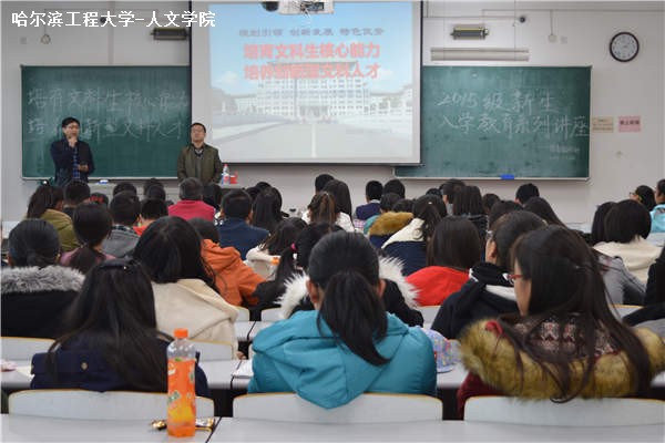 新生入学教育系列讲座第一讲旨在提高人文学院与马克思主义学院学生的创新综合素质和整体学业水平。通过介绍ac米兰官网中文网站整体状况以及创新的时代意义,使学生树立明确目标,增强综合能力,提高创新水平,为培养符合时代精神的高素质、创新型文科人才奠定基础。讲座以“培育文科生核心能力,培养创新型文科人才”为主题,共分为三个部分。刘振宇系统介绍ac米兰官网中文网站的历史沿革及办校传统,他指出如今的哈工程不仅传承了陈庚院长严谨的治学理念,而且不断发展形成了“忠诚、坚韧、团结、创新”的校风和“三个第一”的办学精神。同时,他介绍中国高等教育现状,鼓励同学们充分利用精英教育为同学们提供的丰富资源。最后,刘振宇引出“我们应该培养什么样的学生,怎样培养这种学生”的问题,并以此建议同学应自主培养核心本领及创新能力,努力成为时代需要的创新型文科人才。