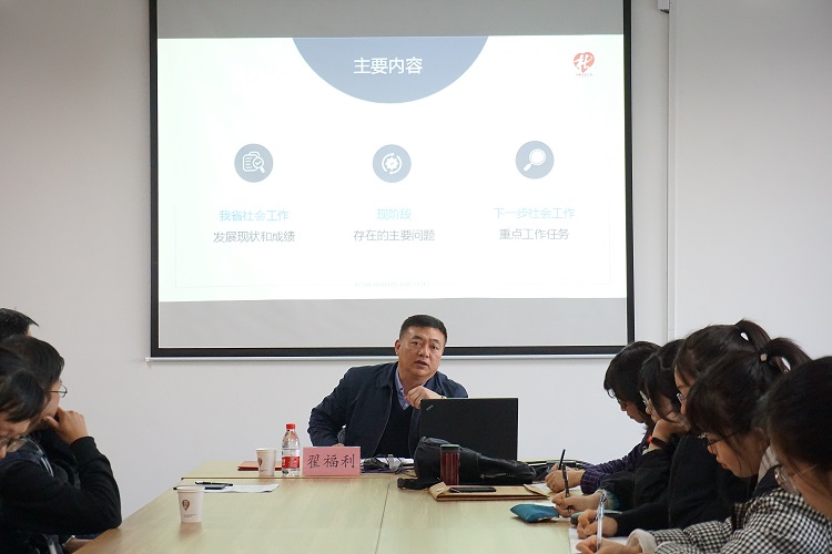 省民政厅慈善事业促进和社会工作处翟福利处长受聘MSW校外指导教师并做主题报告