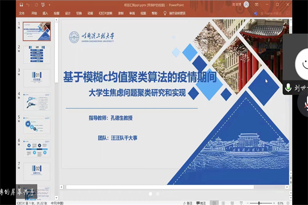 首先,主持人宣布比赛开始,选手依次入会准备;随后,选手按签到顺序入会答辩,通过PPT和论文相结合的方式阐述研究方向、研究方法和研究意义;接着,评委们对若干名选手的共性问题做出解答,指出课题要具有立项依据,不能凭空想象;最后,评委老师依据评审细则做出评价并提出专业建议,提醒选手们要注重问卷调查与社会现状紧密结合,研究的主题紧贴社会生活,灵活运用相关专业知识,重视研究方向与主题的创新。