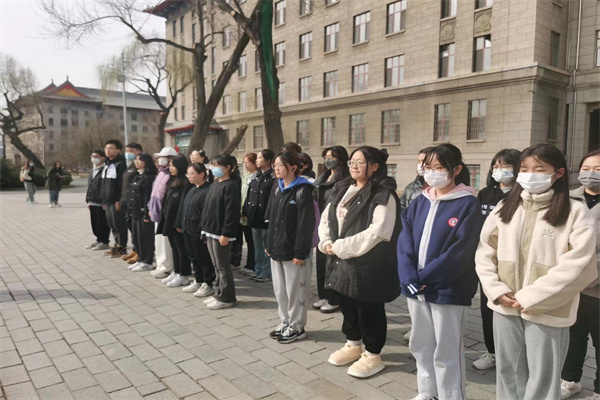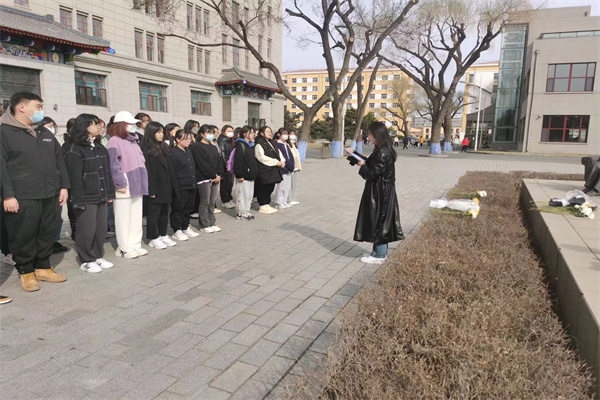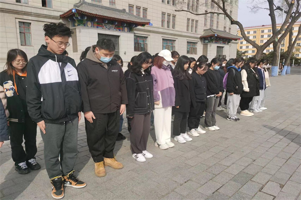 首先,在主持人修琦的带领下,参加活动的同学们在“受命群雕像”面前唱起了国歌;之后,在主持人的引导之下,同学们进行默哀,献花等活动;最后,由22级法学系学生代表弓佳凝进行发言,表达了在场同学的心声,共同缅怀为实现民族解放、捍卫祖国尊严而献出宝贵生命的革命先辈们。