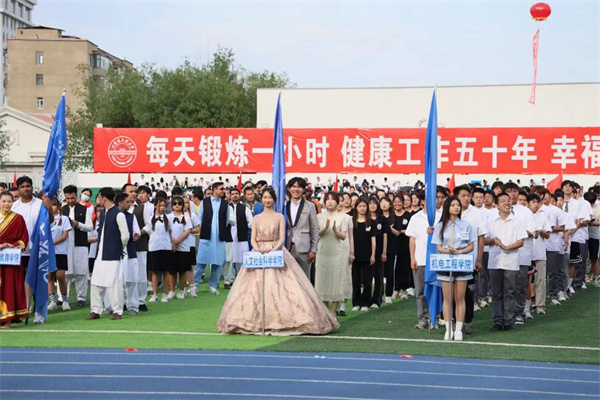学院学生于6时50分集合完毕,精神抖擞地坐在看台等待运动会的开幕。上午8时,运动会正式开始,各院系队伍依次入场。他们朝气蓬勃,面带笑容,昂首挺胸,展现出了青年人应有的精神面貌。接下来,由各院组成的方阵进行团体操表演,为学校师生打造了一场视觉盛宴,赢得阵阵喝彩。