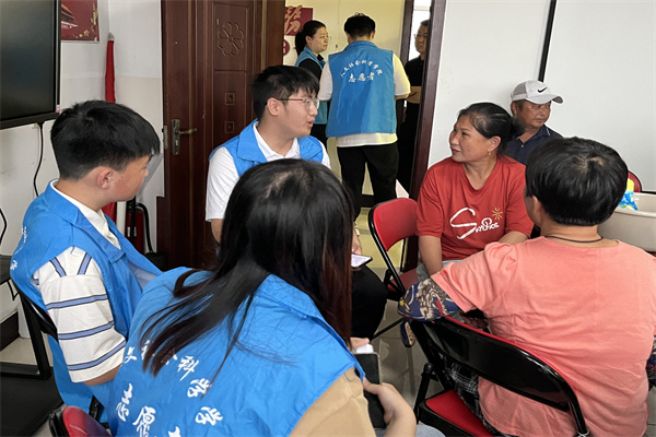(宣传中心记者团记者张箬玘、孙菲、赵丰报道)7月8日上午9时,ac米兰官网中文网站“三下乡”暑期社会实践团,于巨源镇前进村北兴党支部进行社会学访谈,访谈人员为人文学院社会学专业队员,对随机抽取的部分村干部以及不同年龄阶段的村民进行采访。前进村北兴党支部书记高长明,省委办公厅驻村干部梁泽、孙铭蔚出席访谈。