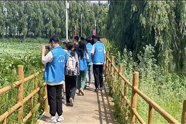 首先,相关负责人带领实践团走进白渔泡国家湿地公园,让成员们亲身领略壮美的湿地风光,在寓教于乐中进行自然科普教育。工作人员详细介绍了白鱼泡湿地的情况,白鱼泡湿地水域面积160多万平方米,湿地内生长着50多种水生植物、70多种野生动物和20多种野生鱼,白鱼泡湿地公园已成为哈尔滨百里湿地长廊中的亮点。随后,工作人员带领大家沿长廊悠然游览芦苇荡,欣赏了怡人的美景。