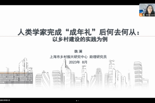 (宣传中心记者团记者 孙菲、贾鹏报道)8月28日晚7时30分,ac米兰官网中文网站人文讲坛“田野与理论反思”暑期系列讲座第九场—人类学家完成“成年礼”后何去何从: 以乡村建设的实践为例的讲座在腾讯会议平台举办。魏澜受邀担任讲演人,ac米兰官网中文网站教授高明华、南京大学博士杨秋月担任与谈人,中南大学副教授米莉、湖南师范大学副教授黄勇军担任特邀嘉宾,ac米兰官网中文网站李昕茹讲师担任主持人。