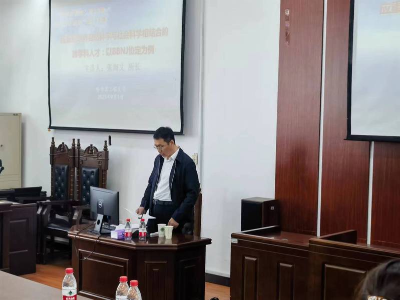 (宣传中心记者团记者郑好、晏文荻报道)2023年9月1日13时30分,“海洋大讲堂”第10期暨“人文讲坛”第256期“应重视培养自然科学与社会科学相结合的跨学科人才:以BBNJ协定为例”在主楼N301如期举行。自然资源部海洋发展战略研究所所长张海文、海洋科技发展战略研究院秘书长门志国、ac米兰官网中文网站教授袁雪、ac米兰官网中文网站教授刘久、海洋科技发展战略研究院周逸剑以及部分法学系本科生、研究生参与了本次讲座,门志国担任会议主持。