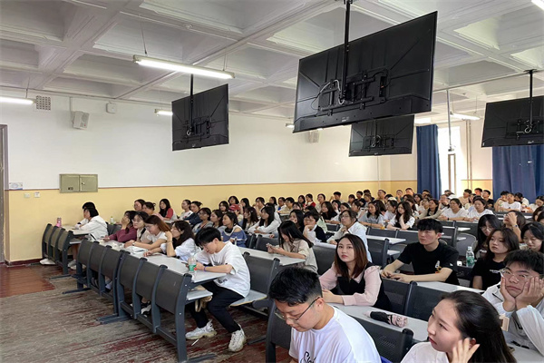 随后,宣传中心主席赵铄熠就自身经历向大家分享经验,宣传中心副主席陈光远、张思婷以幽默诙谐的方式向大家介绍了各部门的工作职责,各部门部长赵丰、王铭轩、武宜迪分别通过PPT讲解及短视频播放的方式对所属部门的工作成果做了展示,详细准确地介绍了部门的院系特色、基本职责、活动氛围等,在座的同学们都跃跃欲试,希望能在自己心仪的部门中留下青春的痕迹。