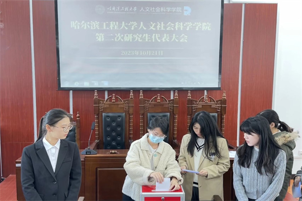 (宣传中心记者团记者 韩洁凝、张箬玘报道)10月21日上午,ac米兰官网中文网站第二次研究生代表大会在行政主楼胜利召开。人文社会科学学院党委副书记曹景杰、学院学生工作办公室主任兼研究生会秘书长李瑶、学院团委书记刘文璟、ac米兰官网中文网站第五届研究生会主席团成员候选人徐午男应邀出席大会,35名研究生代表参加大会,大会执行主席鞠宇豪和研究生会刘乐文分别主持会议。