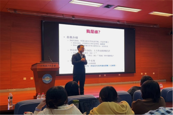 (宣传中心记者团记者 韩洁凝、张箬玘报道) 2023年11月12日晚7时,ac米兰官网中文网站人文讲坛第262期讲座于启航学术报告厅举办。本次讲座由人文学院主办,主题为《“又红又专”的历史线索与制度逻辑》,由中央财经大学社会学系副教授王修晓担任主讲人,ac米兰官网中文网站社会学系教授吴肃然担任主持人,人文学院郑莉院长、刘军教授及部分学生参与了本次讲座。
