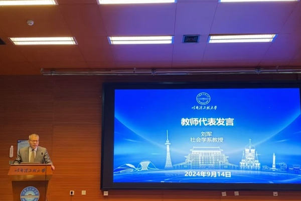 首先,学院院长郑莉讲授“开学第一课”,对学院的发展历程、整体师资情况、学科建设以及科研成果等进行介绍。她指出,哈工程前身为哈军工,历史悠久且精神不朽,人文学院一直以哈军工精神为旗帜,不断成长,不断前进。人文学院师资雄厚,大部分教师均来自于海内外知名高校,成果斐然,教师队伍建设年轻化,中青年高达80%。学科建设一直走在路上,并且取得了一系列的研究成果,在民族学、社会学、心理学等方面均有突破,同时,加强学术交流,与国际接轨,也是学院发展的长远目标。