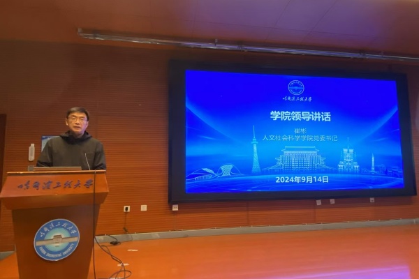 紧接着,学院党委书记崔彬上台致辞。他再次欢迎各位新生加入人文学院这个温暖的大家庭,并向大家提出了三点要求。第一,践行专业使命,肩负社会责任。胸怀天下,关注社会,用知识去改变世界,报效祖国。第二,要确立目标并踏踏实实的付诸行动。在研究生阶段,要讲学业与专业紧密结合,为未来的职业和事业发展奠定坚实基础。第三,培养批判精神,提升核心竞争力。作为研究生,要注重培养批判精神,不能局限于书本知识和传统观念,要敢于质疑、敢于批判,在不断的追问中拓展新的境界。