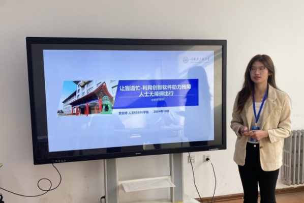 在答辩环节,人文学院参赛同学通过生动的讲解将自己的创新成果进行了分享和交流,使同学们更加深入地了解科技赋能人文对于解决社会问题的重要意义,充分展现出了如何将人才的“软实力”转化为高质量发展的“硬支撑”。