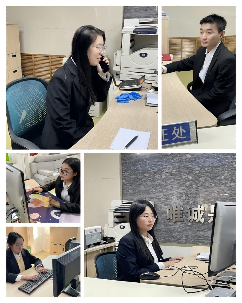 王佳欣同学分享道:“初到中心,我见证了许多无助的人们通过法律途径维护自己的合法权益,也通过协助公共法律服务中心负责接待来访群众和接听咨询热线的值班律师,学到了许多实际操作经验。每一位来访者背后都有一个令人揪心的故事,这使我意识到法律不仅仅是书本上的条条框框,更是现实生活中人们维护尊严和权利的武器。在实习期间,我们还参与了一些普法宣传活动向社区居民普及法律知识,提高他们的法律意识和维权能力。工作中我深刻感受到了团队合作的重要性,从律师到行政人员,每个人都秉持着高度的责任感和敬业精神,为维护社会公平正义而努力奋斗。”