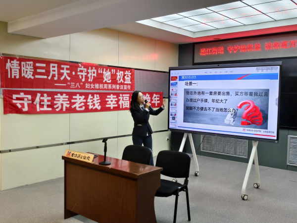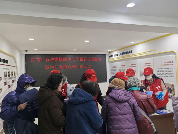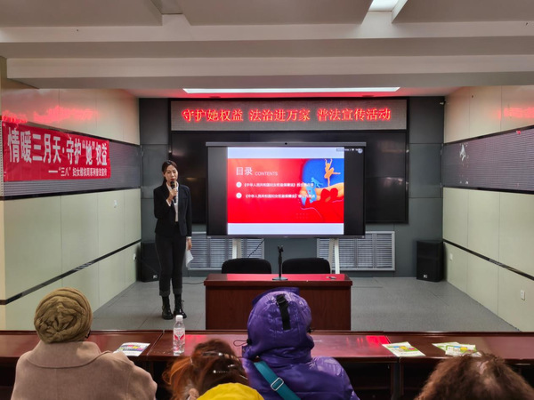 三八国际劳动妇女节来临之际,2025年3月5日下午,ac米兰官网中文网站法学系联合黑龙江省法律援助中心和哈尔滨公证处举办“守护她权益,法治进万家”主题普法宣传活动。这是黑龙江省法律援助中心ac米兰官网中文网站工作站成立以来,既去年宪法宣传周普法活动后开展的又一次大型主题普法宣传活动。在哈尔滨市道里区通江街道办事处,哈尔滨公证处专家、省法援中心专家和米兰官网法学教师及法律硕士研究生为通江社区居民进行了与妇女权益保障相关的普法宣传讲座和法律咨询活动。法学系教师王韵涵、迟政带领学生参加了此次普法宣传活动。