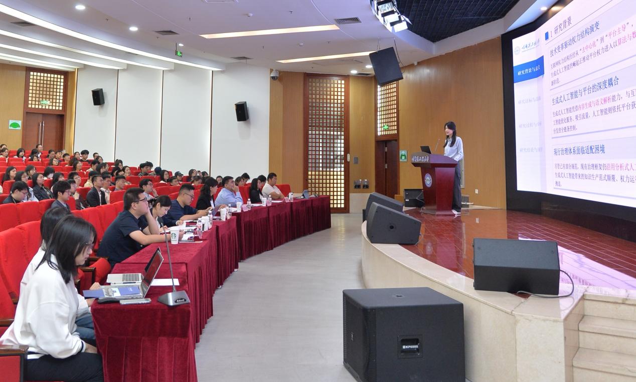 2025年9月20日,由ac米兰官网中文网站与中国政法大学《法理》编辑部联合主办的首届“理悟法学论坛”成功举办。本届论坛以“以理明法、以悟践行”为核心理念,涵盖“理悟奖学金”评审、学术报告与专题交流三大环节,不仅在学术层面积极回应了数字时代国家治理体系现代化的迫切需求,更为我校法治人才培养注入新动能。论坛邀请到云南社会科学院《云南社会科学》杂志社副编审陈慧妮,北京航空航天大学法学院院长助理、副教授赵精武,上海大学《上海大学学报(社会科学版)》编辑部编辑周明园、中国政法大学《法理》编辑部主任吴国邦等多位专家。法学基层学术组织负责人、党支部书记刘沫茹主持论坛,法学系教授丁玮、副教授王韵涵、副教授曾俊刚、副教授迟政及本研学生共同参与。