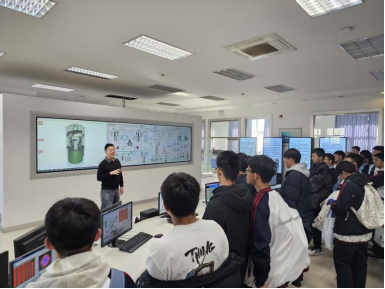 在核科学与技术国家级虚拟仿真实验教学中心,王珑璁老师与刘中坤老师为同学们讲解了核能发电的基本原理与核燃料循环过程,通过核电站三维模型动画演示,让同学们仿佛身临其境,通过老师们的讲解,同学们对“核”有了全新的了解,不再“谈核色变”。随后核学院王靖阳老师还进一步介绍了哈工程在核工程领域的学科优势、就业前景等情况,帮助同学们对未来专业选择建立更加清晰的认知。